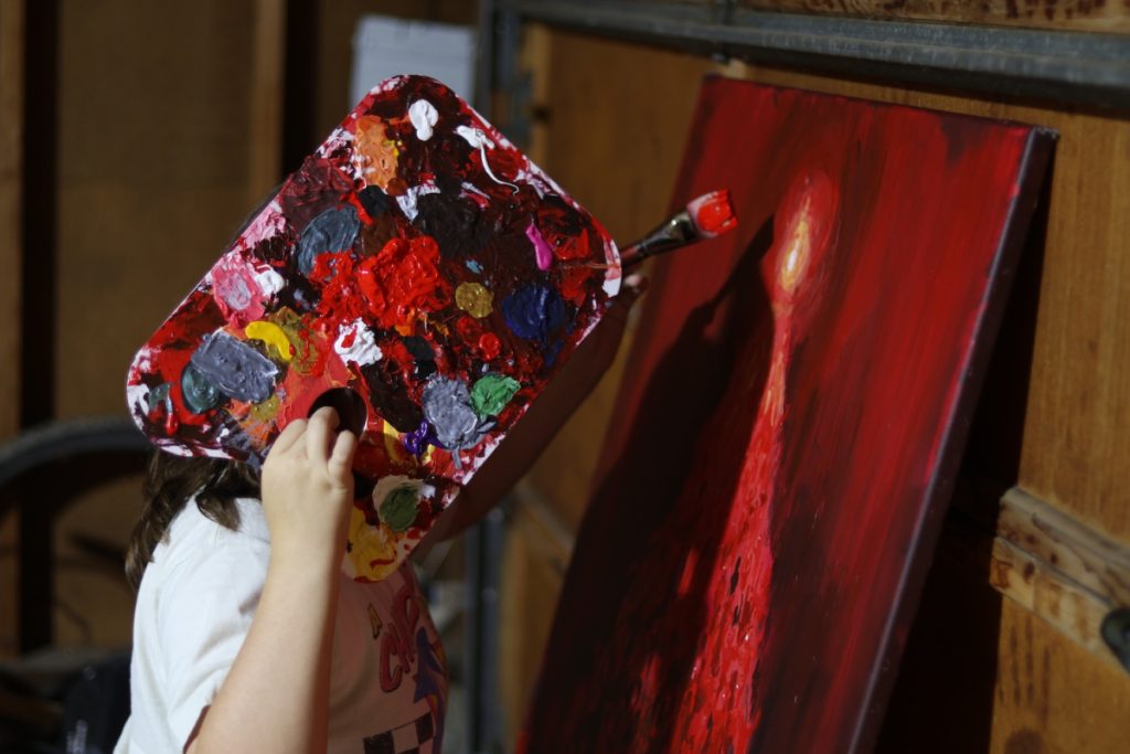 This Faceless Self Portrait represents a key aspect of my life–my identity as an artist. While my art is often done digitally, I find that traditional painting forces me to slow down, watch each brush stroke with precision and caution, and feel more connected to my completed work.