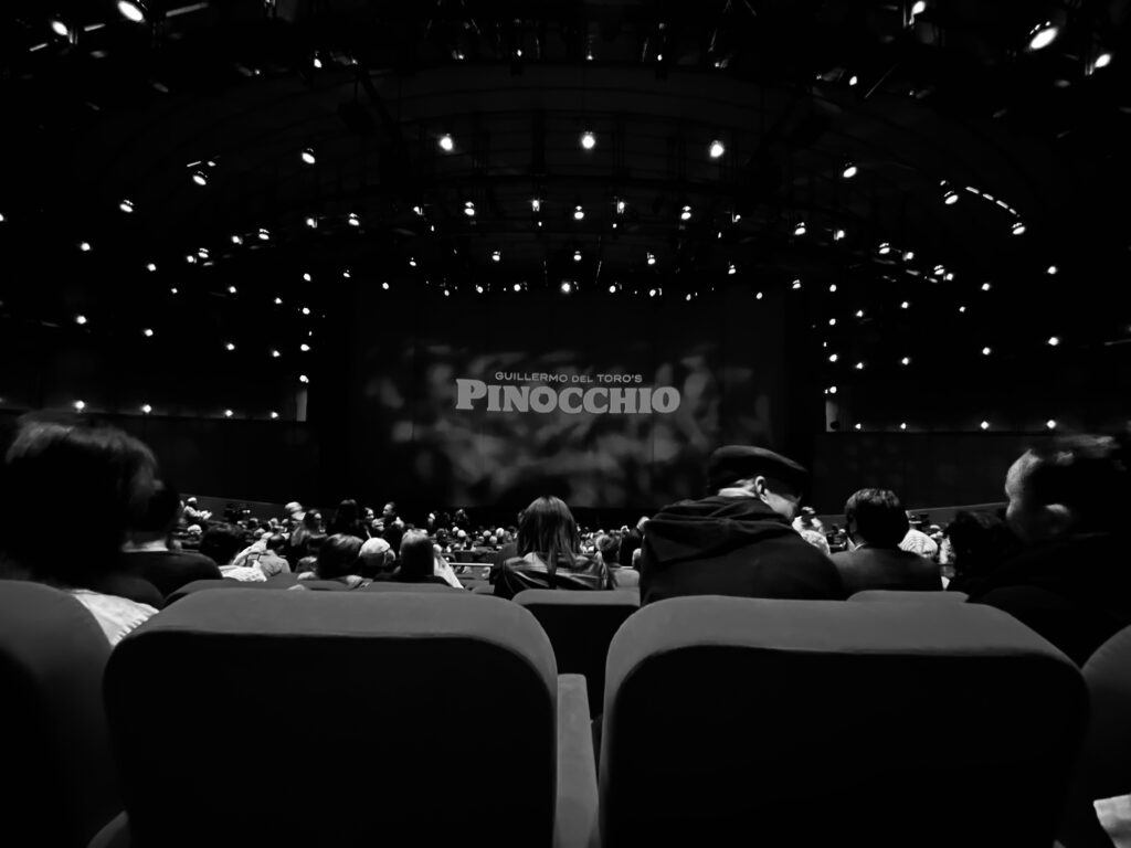 This is a picture I took at a theater in downtown LA. My sister was invited to a private screening of Guillermo Del Toro’s Pinocchio, and she was allowed to bring a guest, so I went. After we watched the movie, Guillermo Del Toro went onto the stage and answered questions from the audience about his inspiration, the creative process, and etc. Afterwards there was a long party in the ballroom of the theater and it was a lot of fun.