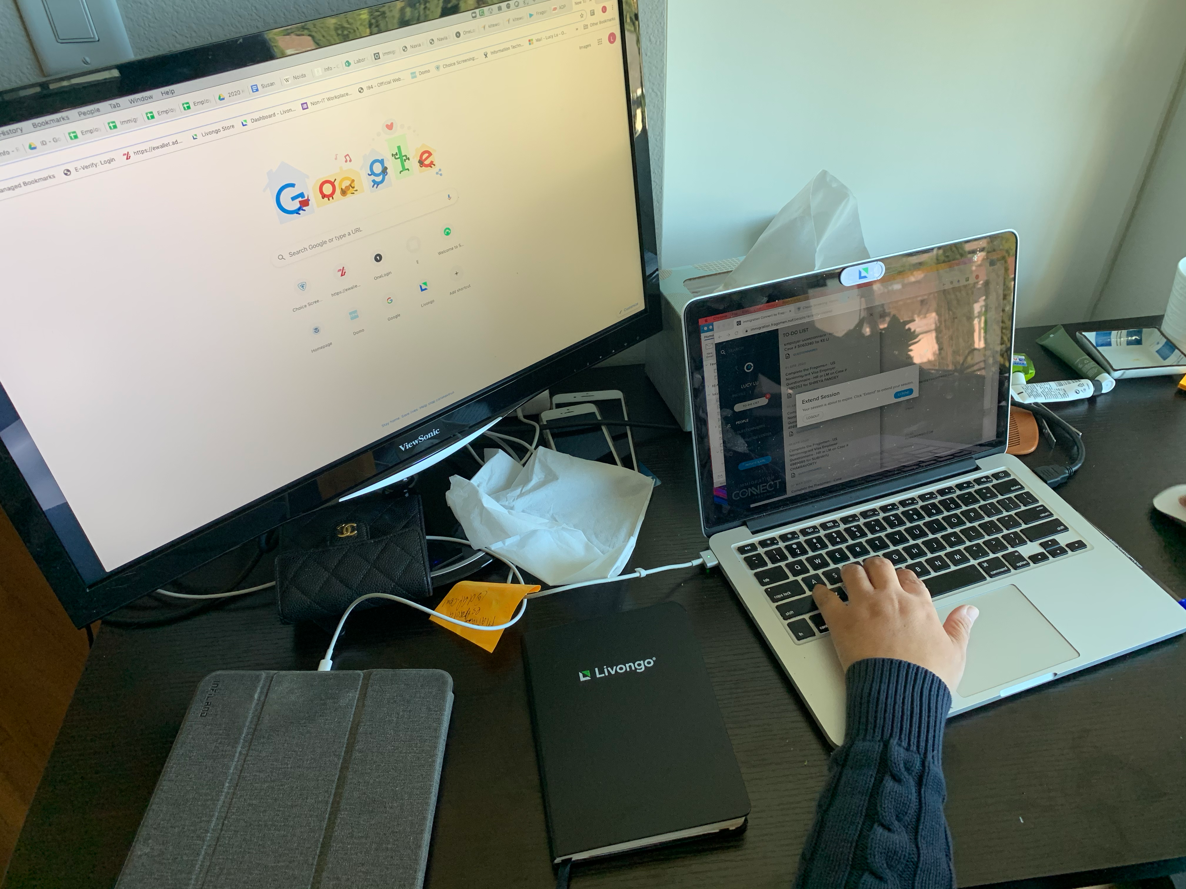 My mother working from home.