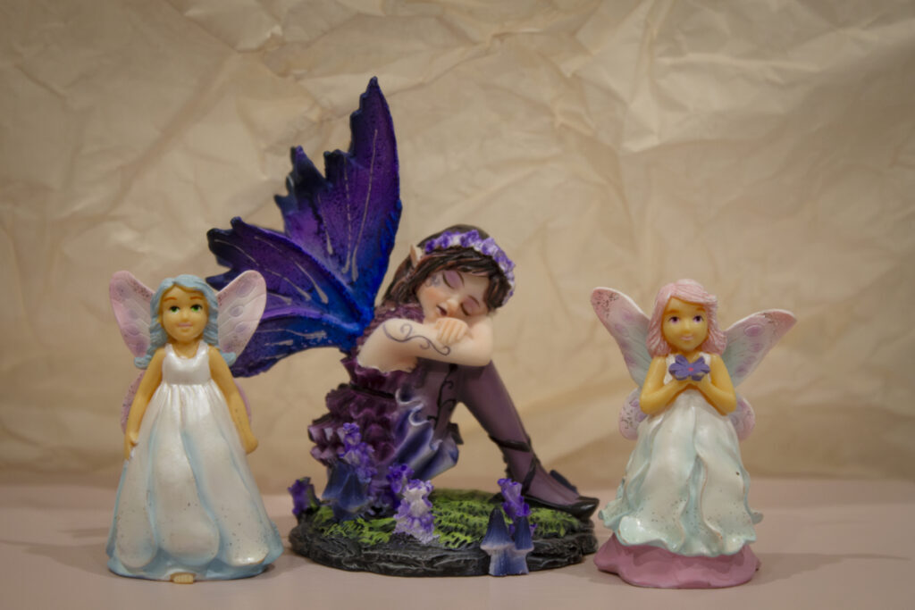 In photography, using the rule of odds means capturing an odd number of subjects in a photo. For this week’s prompt, I chose to take a photo of three fairy figurines from my fairy collection. I positioned them so that they were in one group but could still be divided into three “sections” to achieve the rule of odds in the photo’s composition. I made minor edits to this photo in Photoshop by adding a vignette so the focus is on the fairies and by adding a curves adjustment layer to brighten it.