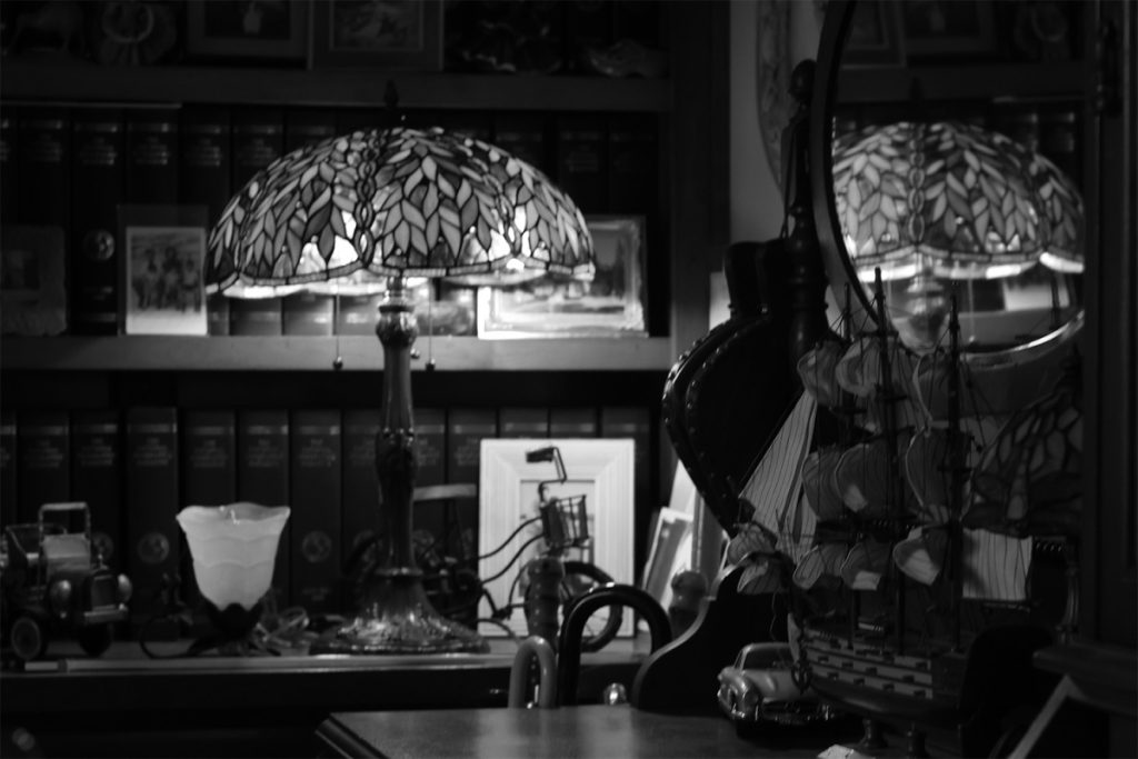 Nothing screams film noire more than a dark alleyway or vintage building. Thus here’s a picture of my library in noire style.