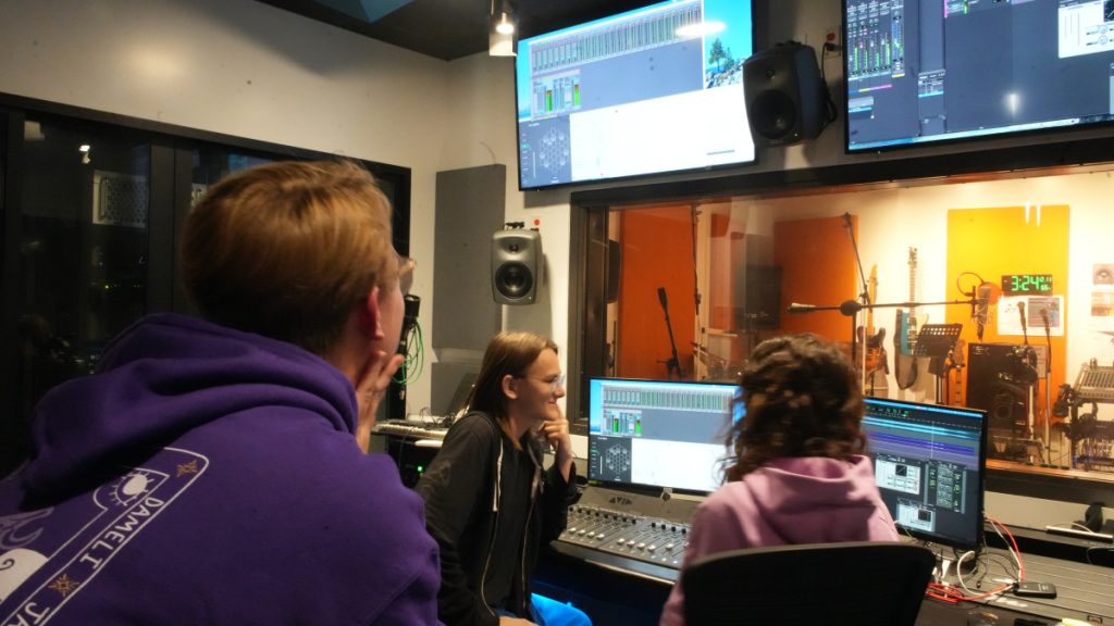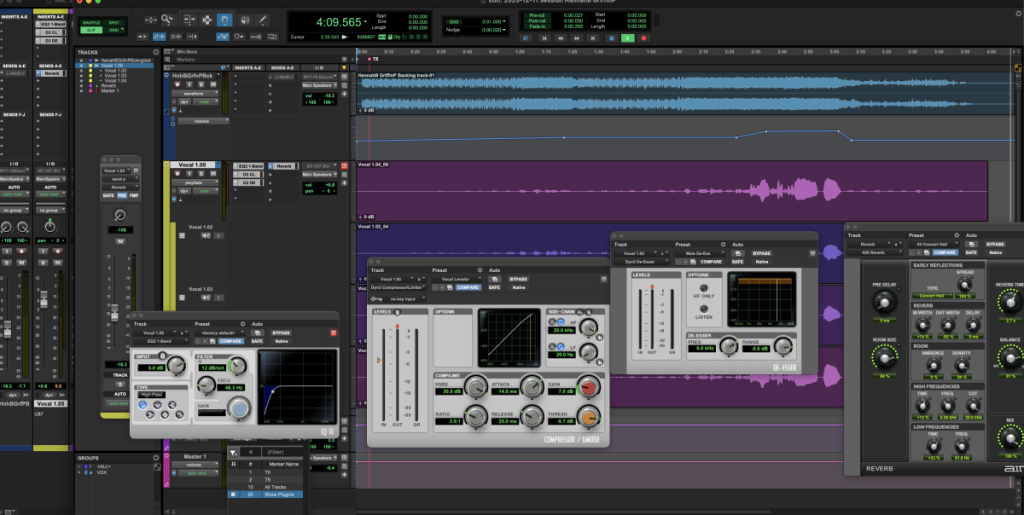 The music recording project is an assignment where we were to find a local musician that wanted their music recorded, bring them to the music recording studio, and record the song. We would then take some photos of the experience, edit the song, and send the finished version to the artist. I worked with Hannah B as another audio mixer and Kai Perrino as the singer.