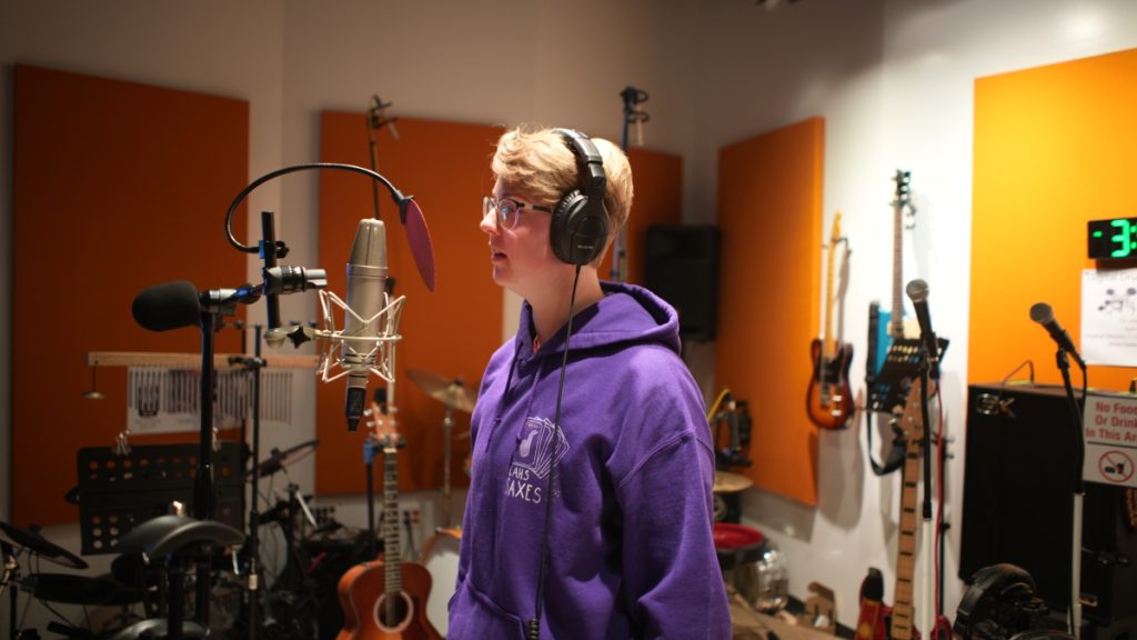 For this project, Griffin and Hannah brought in an LAHS singer, Kai, to the recording studio. He was excited to perform despite being sick, and was able to perform a stunning solo piece, Creep by Radiohead. This song was chosen partly because it was a lower register, and therefore easier for Kai to sing while sick, but also because it has an incredible part in the middle with a higher sound, showcasing Kai’s volume and range.
