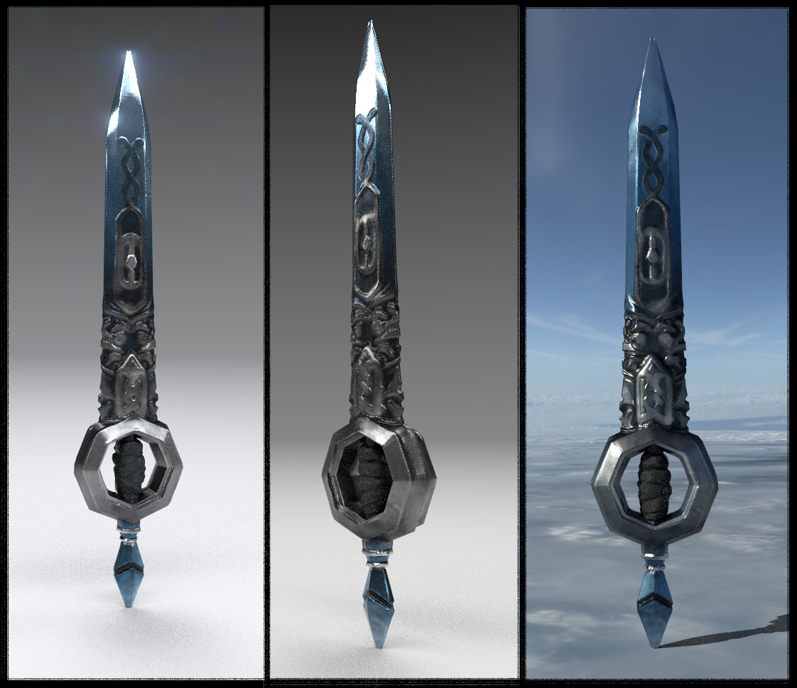 Our first assignment was to model, sculpt, and texture a weapon of our choice. We started in Maya with the full shape, then used Zbrush for more details and organic aspects, and finally used Substance Painter to texture and render the photos.