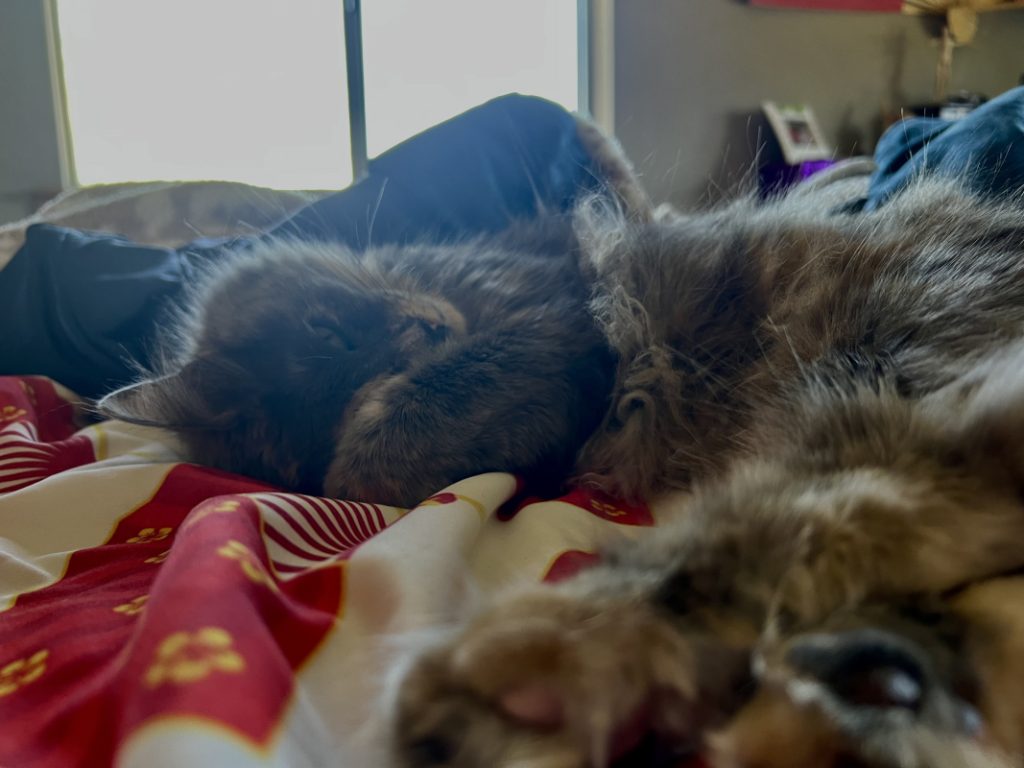 I did this photo of my cat to show her sleepiness on my bed. I did my best to line it up with the rule of thirds. I thought she was quite expressive in her way of showing how tired she was. I love her so much.