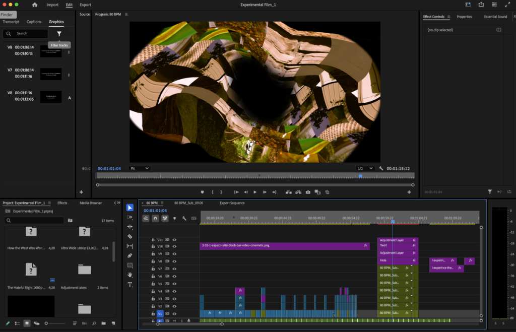 The giant tower of clips at the end is me layering every single clip from the entire film all on top of eachother, to create one giant amalgamation of clips, hence the name of my film. I had to use a lot of compound timelines in order to malleableize each individual frame. This did take a toll Mr. Taylors comupters a bit but I think it ended up looking cool in the end.