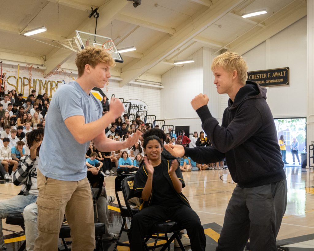 You might be thinking, “Landon, this is not a sport.” And while, yes, this is not a sport, I believe the moment I captured encapsulates everything that is sportsmanship. It had been the final round of the Hoco Parade musical chairs match, and these two guys landed on the chair at the same time. And when the announcers said that they would be playing a rock paper scissors match in order to settle the elimination, I knew I had to capture it. What I love about this photo is you can see the audience in the back all watching this little game of rock paper scissors. Capturing the excitement and human connection in what we find in sports.