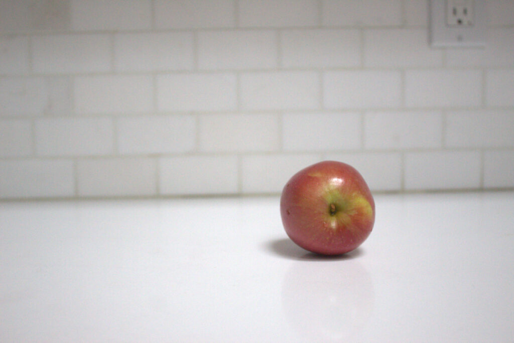 For the rule of thirds motion photo assignment, I chose to take a photo of an apple rolling across a surface. Using the rule of thirds, I perfected the moment where I took the photo so that the apple would land in the correct spot. It took a few tries as the apple would roll off the table or would go in an odd direction, but after many tries, I was able to perfect the timing and was able to get a clean shot of the apple rolling by.