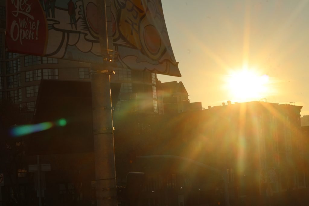 My friends and I, a day before Thanksgiving, decided to take a trip to San Francisco. We visited many places and eventually arrived at Japantown, where we all gathered and spent some time together. Giselle, Maya, and I wanted to take photos of the sunset, but it was still too early, so we split up the group, and we went to the city hall to take more photos. When we came back and were on a bridge just taking photos, I spotted the other half of the group, and we all got together. It felt nice to hang out while seeing the sun slowly set.