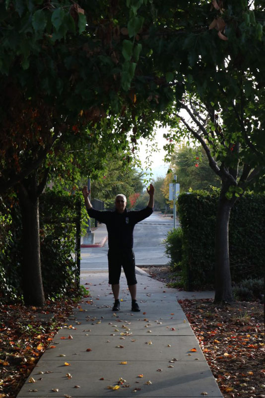 This week’s photo is about using surroundings to make a frame within the picture. We used the trees and the fences to form a frame around my dad, and took a picture of it.