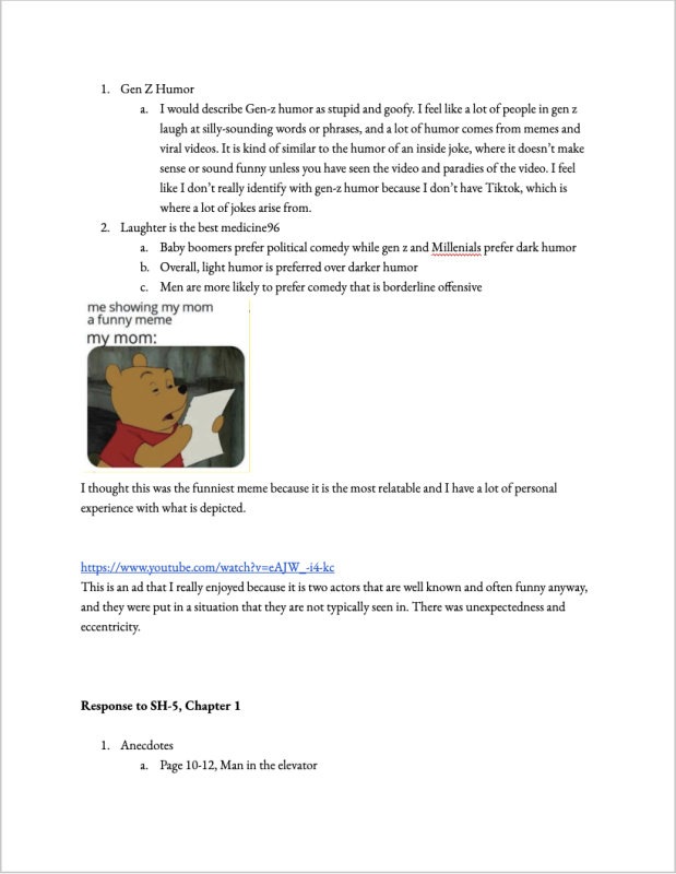 We began the unit by reading Slaughterhouse-5 by Kurt Vonnegut, which introduced us to many humor techniques, such as blue humor, black humor, callbacks, and more. We had 3 class discussions, in which we covered the themes of war and free will. Below is my process document.
