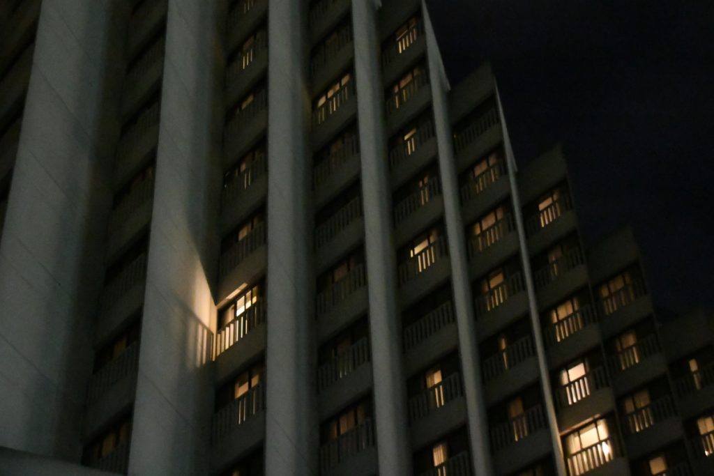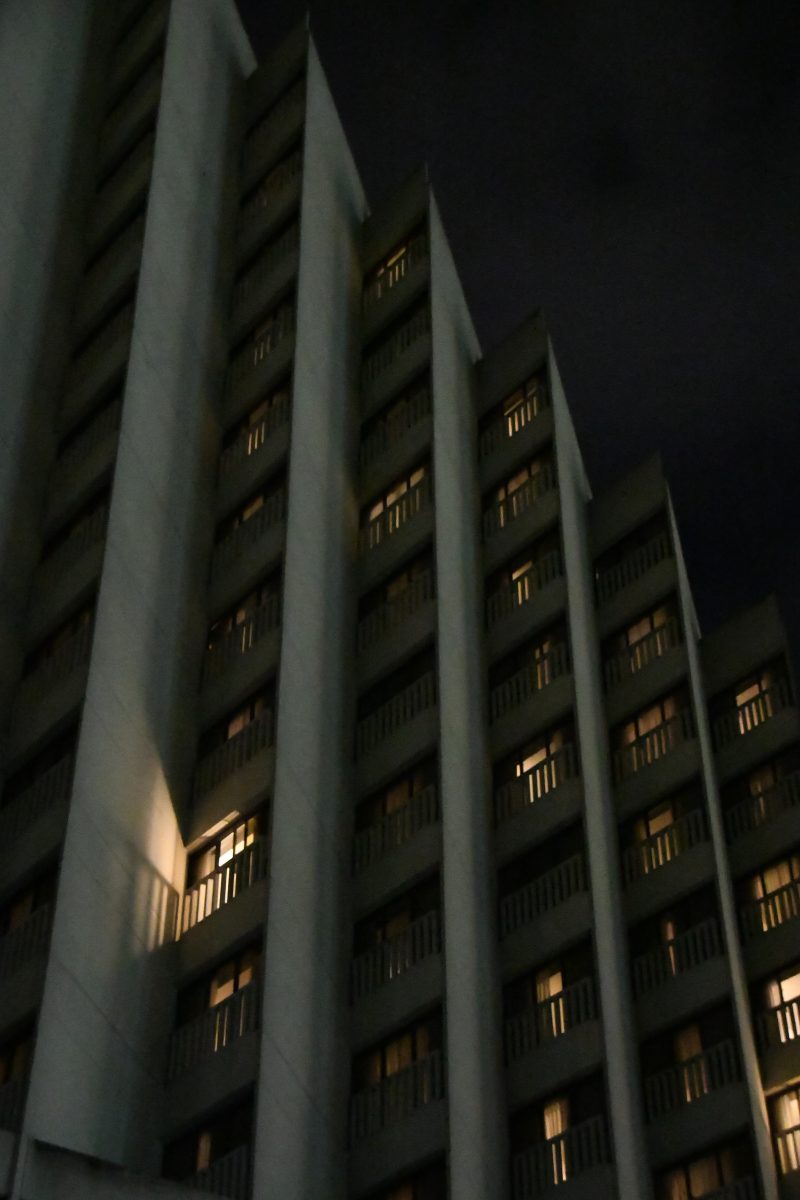 Down by the bay in the city me and my family go to see the San Francisco Glow I saw this building that could be apartments or a hotel. I loved the angles it had and once I stayed and looked at it long enough I saw the single lighted room and I wanted to frame it as the central point in the photo.
