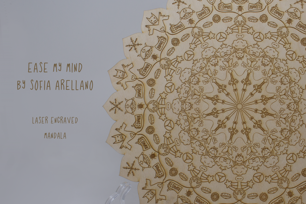 This project gave me the opportunity to tell an audience a little bit about myself and my current interests without having to use any words. It was really fun for me to create this because I was able to just sit back, listen to some music and put into doodles who I am, hence why this really felt like a -personal- mandala. There were many doodles that didn’t make it to the final piece but through trial and error, I’m happy to say that I really did love the final product. Many of these doodles are also easter eggs from fandoms that could be easily recognized, from the Zelda sword to the tiny baymax over the cloud. I titled my mandala “Ease my mind” because not only was it really relaxing to do this artwork, I think that everything in this mandala represents or has represented certain moments in my life when I connected through the work of others (movies/videogames/shows) and they helped me very literally “ease my mind” in times of stress or uncertainty. Through the process of creating this mandala I was really able to see flashbacks of my life as I created each doodle and doing that helped me look within all the progress I’ve made to be a better person ever since; it gave me the chance to see who I am today compared to who I was before and seeing how much I’ve grown was very heartwarming.