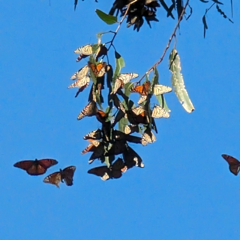 Following what I know, I think the very solid blue sky in the background definitely helps display that these butterflies are migrating en masse, even though there isn’t exactly implied motion.