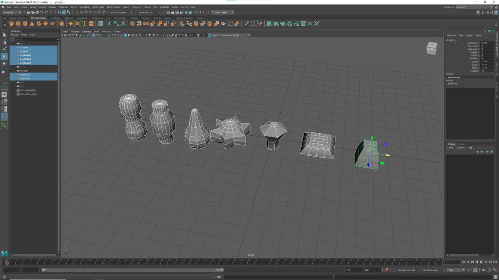 To kick off the year in animation, I learned how to do basic modeling in Autodesk Maya. I got to experiment with extrusion, node control, smoothing, camera manipulation, mesh editing, booleans, and even some material editing. Using these techniques, I modeled a variety of objects, landscapes, and the beginnings of a character I designed.