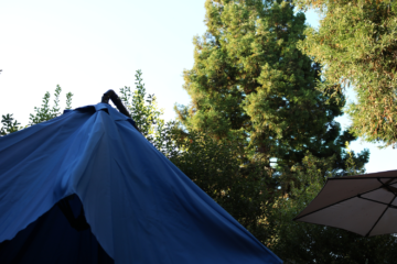The sun makes us feel warm, even when we are in the shade. When taking this photo, I sought to capture the warmth of the sun indirectly through its shine on the trees. The cool umbrellas are meant to contrast the warm trees and sky, and they frame the canvas Read more