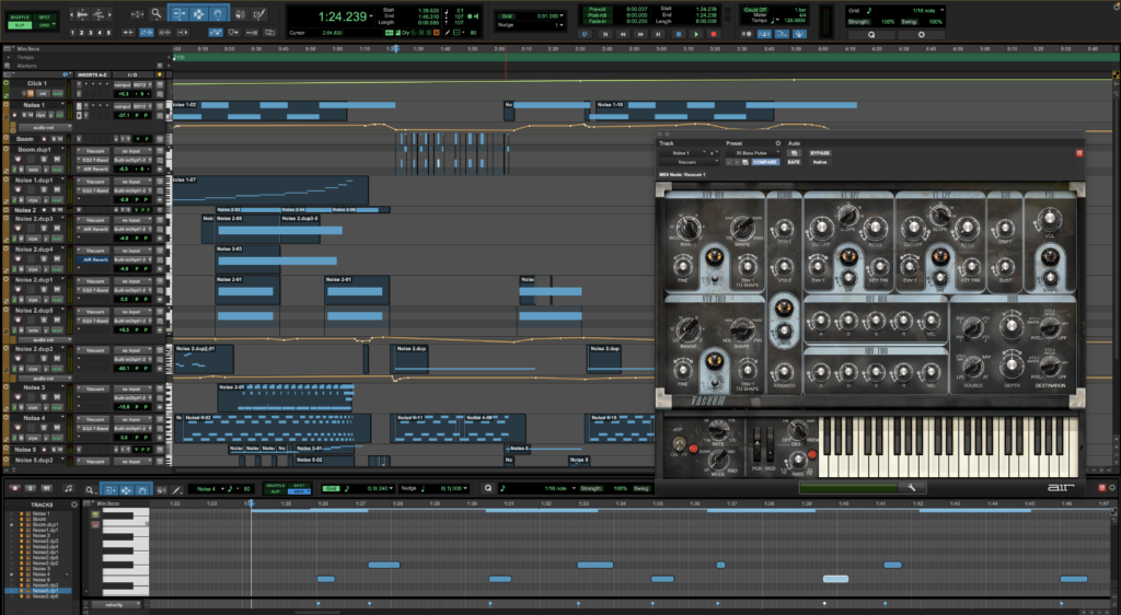 Pro Tools Interface for my project with Vacuum instrument and editing window open