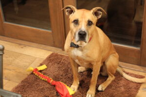 This image shows a love story between my dog and his favorite toy. This is shown through the way he sits and waits patiently to go outside. The toy is at his feet as we waits.