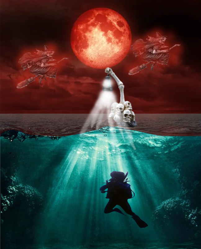 The man in the water could not stand the darkness and was determined to find the light. Finally, he saw a beam of dazzling light coming from the water surface, so he swam upward desperately. From our perspective, we can see that what is waiting for him above the water surface is a more bizarre and terrifying world.