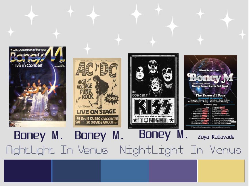 For this assignment, we had to create an original, realistic concert poster from the artist we selected, created by hand in Adobe Illustrator. Before I created my poster, I had researched my band to eventually create a mood board where I decided on my color scheme, font, and imagery. When starting the poster, I decided on a disco setting with a disco floor and ball. I started with the floor, but really struggled with deciding which perspective looked the best, which took a lot of time to redraw again and again. Since a lot of my inspo posters contained the artist performing, I wanted to add a photo of them. Since I wasn’t allowed to use the photo directly, I got permission to image-trace it instead. After trying to draw a disco ball in the limited time we had, I also got permission to image trace that as well. The day before this project was due, I got advice from my teacher to add more dimension and movement to my poster. So I decided to slant the floor and have the disco ball in motion. Making these changes made my poster a lot more visually appealing, and I’m very glad I changed it. Going forward, I would like to ask for criticism more often and create more abstract perspectives.