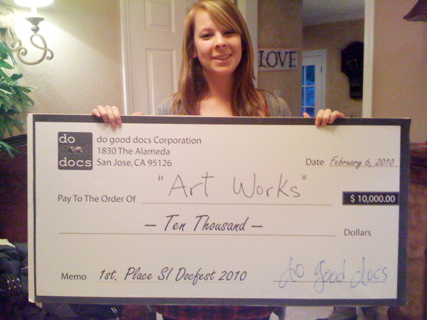 Films were judged by an expert panel, and "Art Works" received $10,000 that was distributed among the designated non-profit profiled in the documentary Imagine Bus Project, Freestyle Academy, and the filmmaker(s) themselvesNatalie/Emily in the form of a cash scholarship.