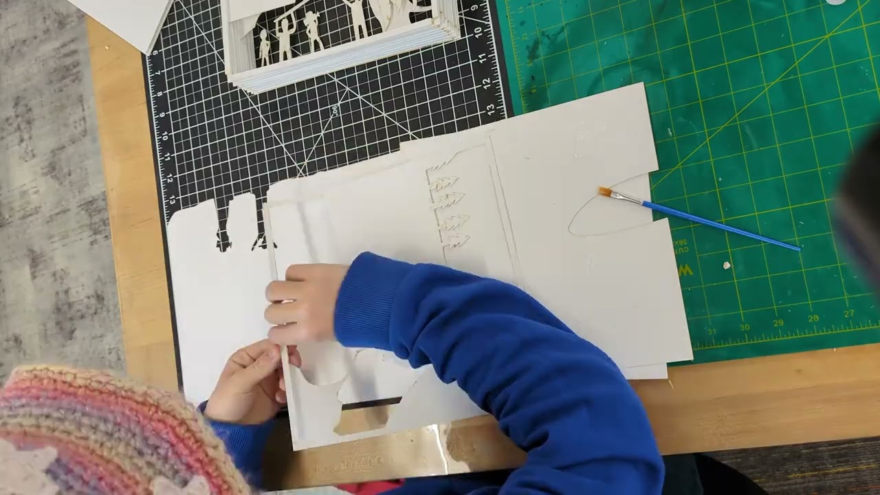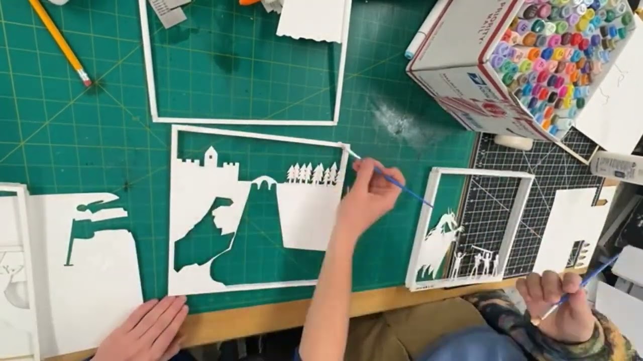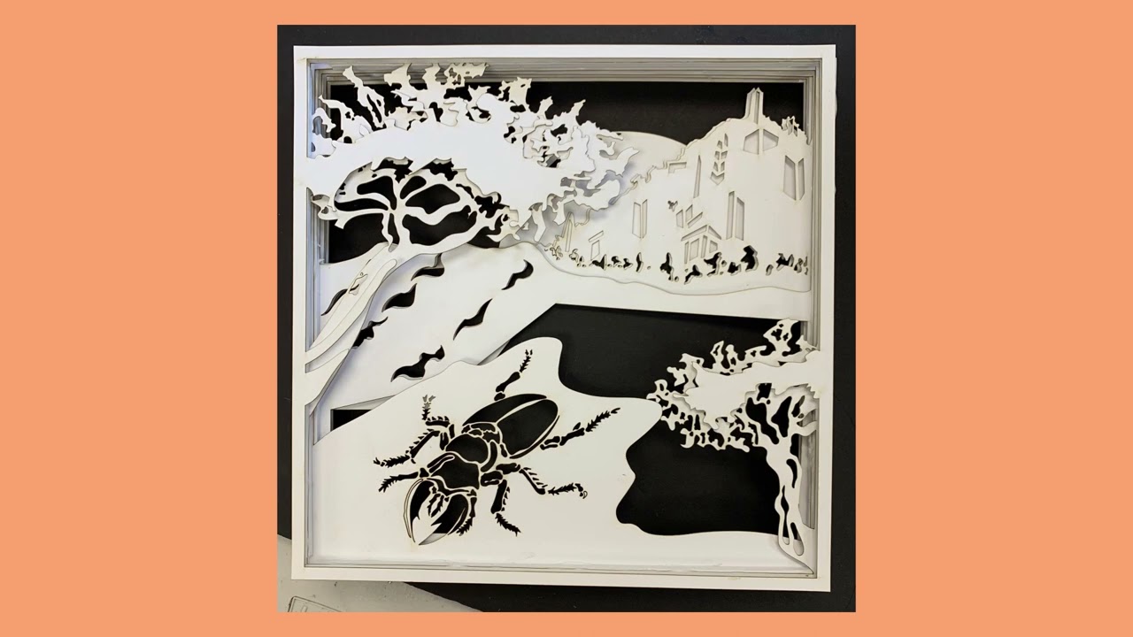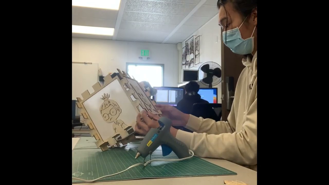 Each project was created with Adobe Illustrator, then laser cut with paper or wood. Each student was tasked to create a time-lapse or accelerated video showing the physical assembly process including electronics for the light box project and ending the video featuring the completed multi-layer art production.